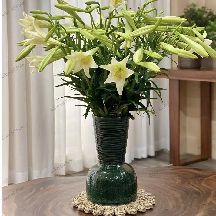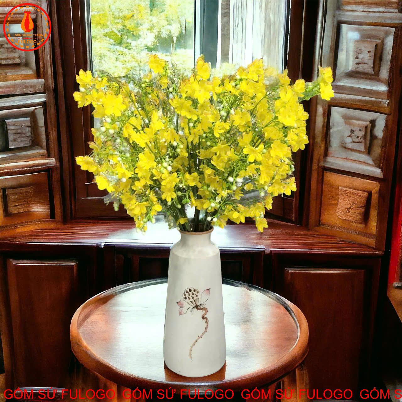 Bình chân loe men mộc cao – thích hợp cho hoa thân dài như ly, tuyết mai, đào.