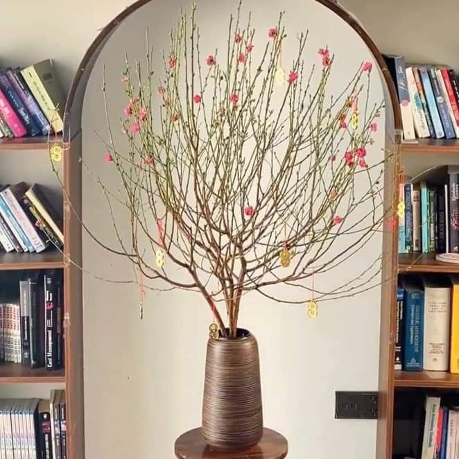 Đào huyền (hay còn gọi là đào thế, đào rủ) là loại đào có thân dài, cong mềm mại như suối, thường được dùng để cắm trang trí trong dịp Tết Nguyên Đán. Tuy nhiên, để đào huyền phát huy hết vẻ đẹp thanh thoát và nghệ thuật của nó, việc chọn bình cắm phù hợp là điều cực kỳ quan trọng.