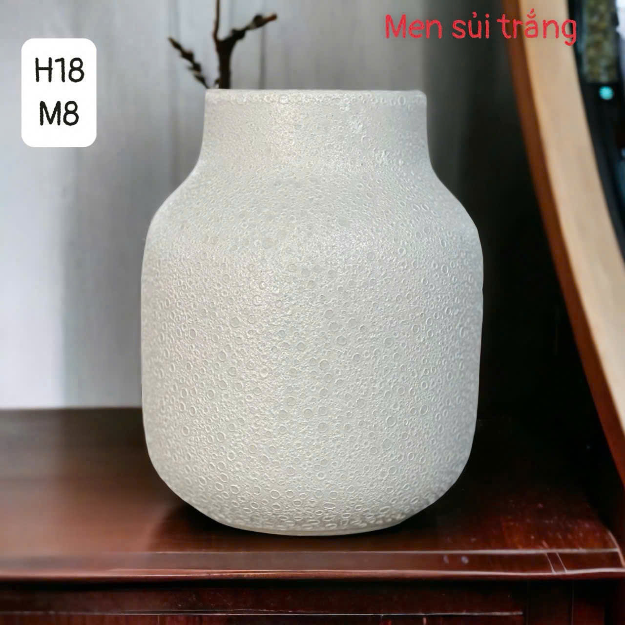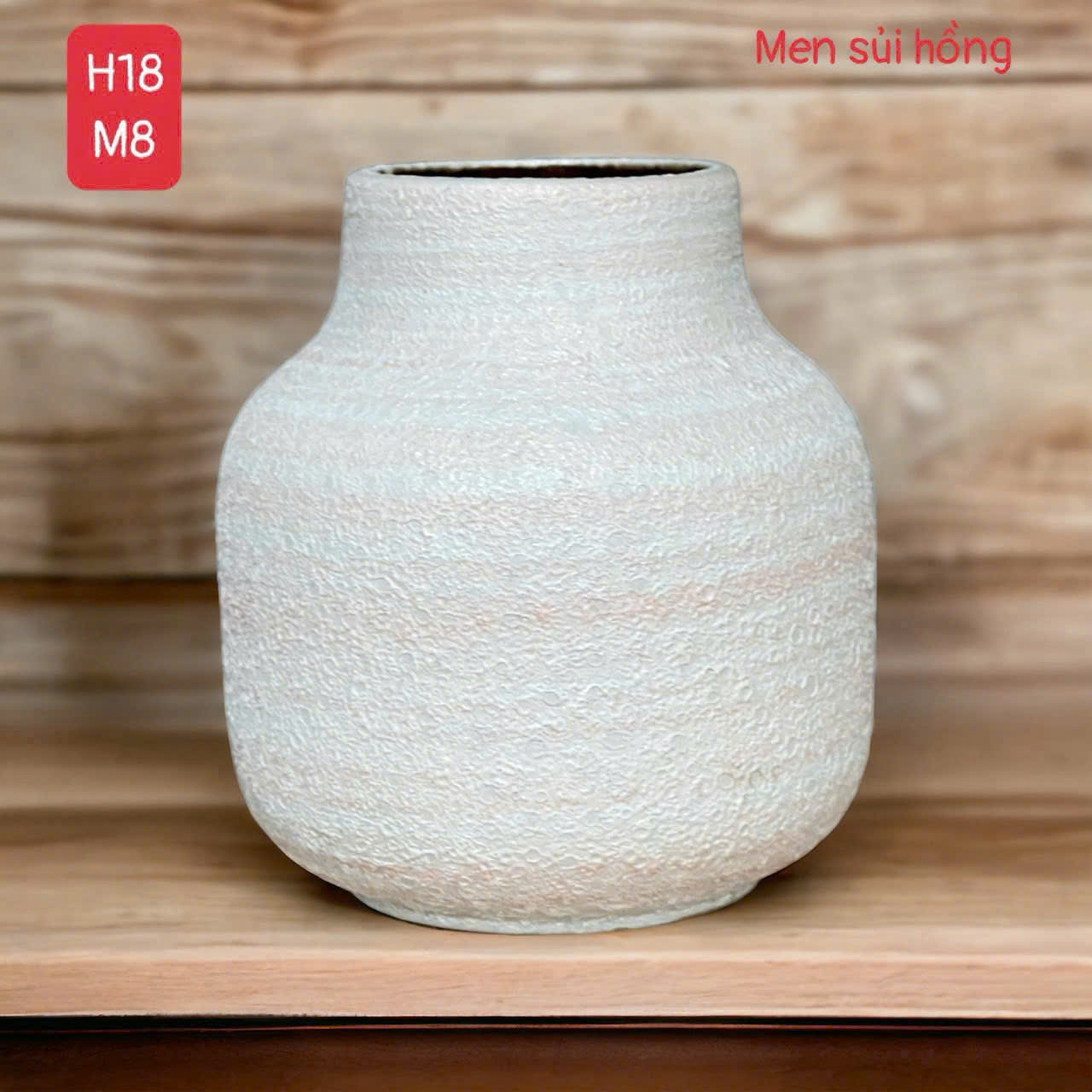 🔹 Chiều cao 18cm, miệng rộng 9–10cm, dáng tròn đầy vững chãi – cắm hoa gì cũng “hợp dáng”.