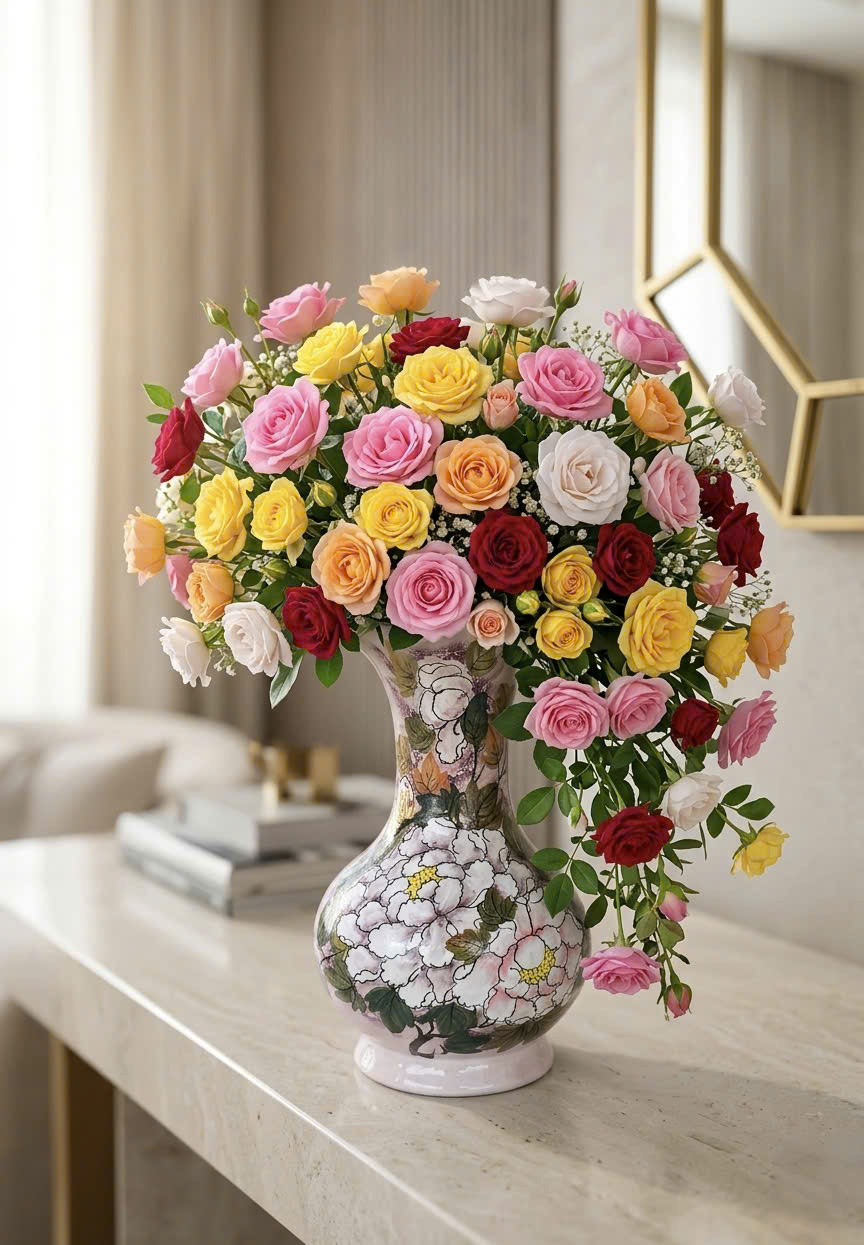 👉 Bình hoa luôn là điểm nhấn giúp không gian trở nên sống động và có cảm xúc hơn